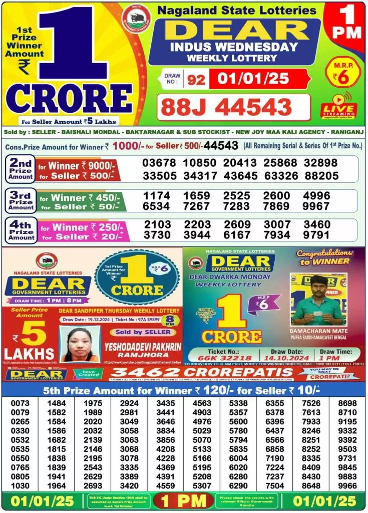 Sambad Lottery Day Result 6 PM 1.1.2025. Free download Nagaland Dear Lottery Sambad 6 PM Day Result Online. Lottery Sambad Day Result 6 PM 1-1-2025.