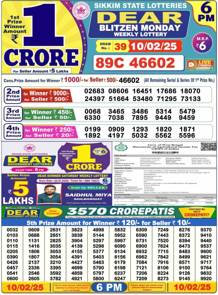 Sambad Lottery Day Result 6 PM 10.2.2025. Free download Nagaland Dear Lottery Sambad 6 PM Day Result Online. Lottery Sambad Day Result 6 PM 10-2-2025.
