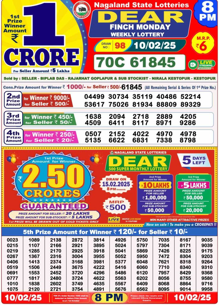 Daily Lottery Sambad Evening Result 8 PM 10/2/2025. Dear Lottery Sambad Evning Result 8 PM live online 10-2-2025. Nagaland Lottery Evening Result 10.2.2025. Lottery Sambad Result 10.2.2025.