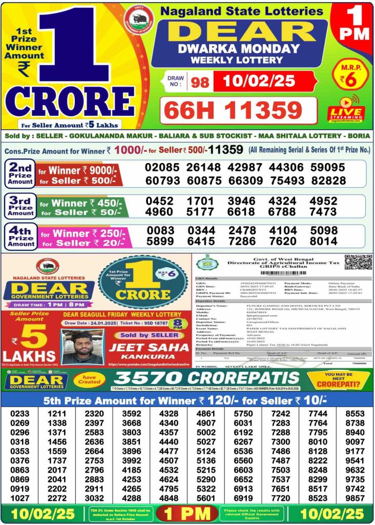 Sambad Lottery Morning Result 1 PM 10-2-2025. Check and free download Dear Lottery Sambad 1 PM Morning Result 10/2/2025. Nagaland Dear Lotery Sambad Result 1 PM 8.1.2023.