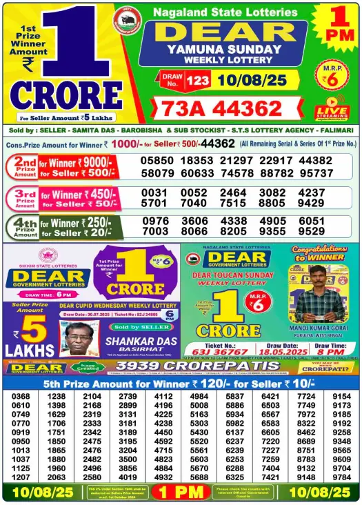 Sambad Lottery Morning Result 1 PM 10.8.2025. Check and free download Dear Lottery Sambad 1 PM Morning Result 10/8/2025. Nagaland Dear Lotery Sambad Result 1 PM 8.1.2023.