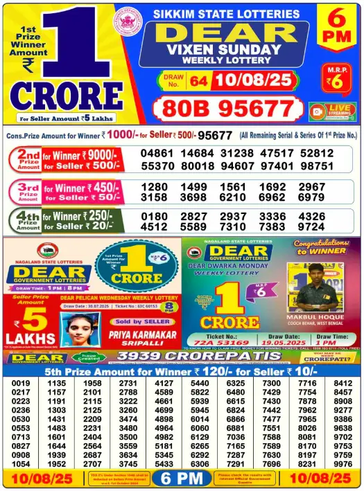 Sambad Lottery Day Result 6 PM 10.8.2025. Free download Nagaland Dear Lottery Sambad 6 PM Day Result Online. Lottery Sambad Day Result 6 PM 10.8.2025.
