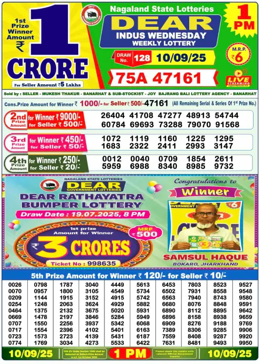 Sambad Lottery Day Result 6 PM 10.9.2025. Free download Nagaland Dear Lottery Sambad 6 PM Day Result Online. Lottery Sambad Day Result 6 PM 10.9.2025.