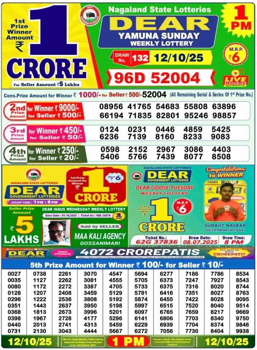 Sambad Lottery Morning Result 1 PM 12.10.2025. Check and free download Dear Lottery Sambad 1 PM Morning Result 12/10/2025. Nagaland Dear Lotery Sambad Result 1 PM 8.1.2023.