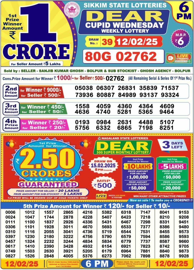 Sambad Lottery Day Result 6 PM 12.2.2025. Free download Nagaland Dear Lottery Sambad 6 PM Day Result Online. Lottery Sambad Day Result 6 PM 12-2-2025.