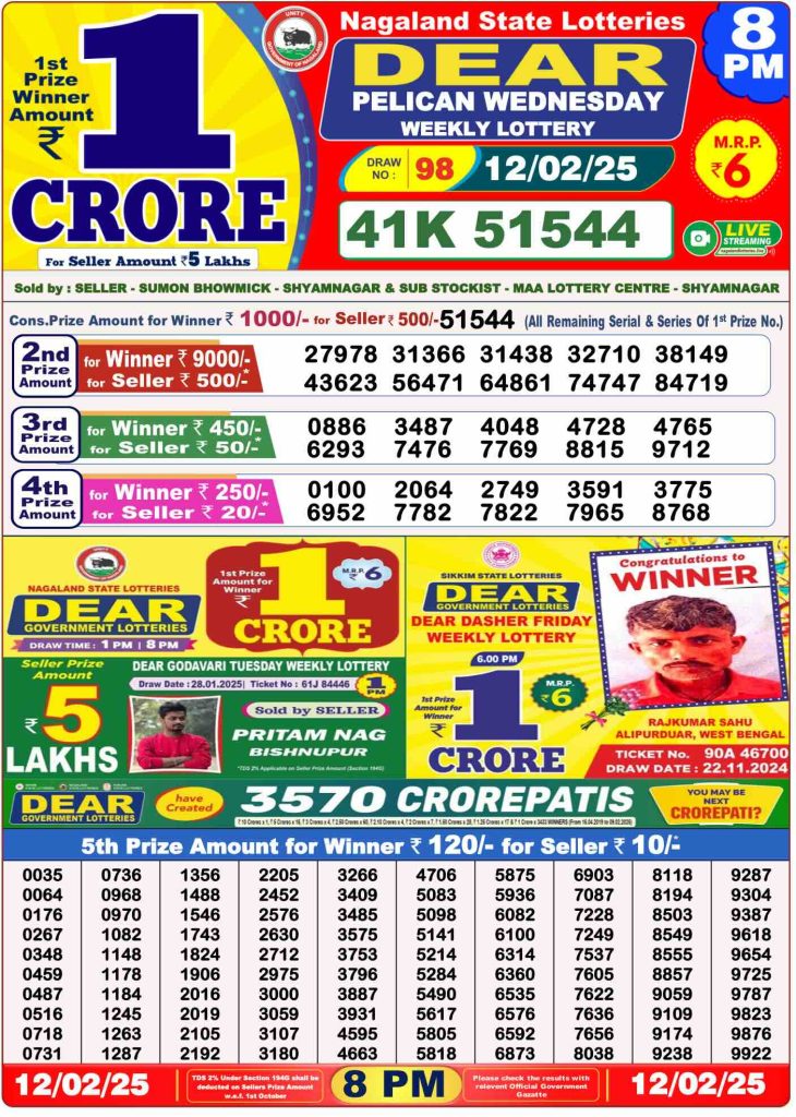 Daily Lottery Sambad Evening Result 8 PM 12/2/2025. Dear Lottery Sambad Evning Result 8 PM live online 12-2-2025. Nagaland Lottery Evening Result 12.2.2025. Lottery Sambad Result 12.2.2025.