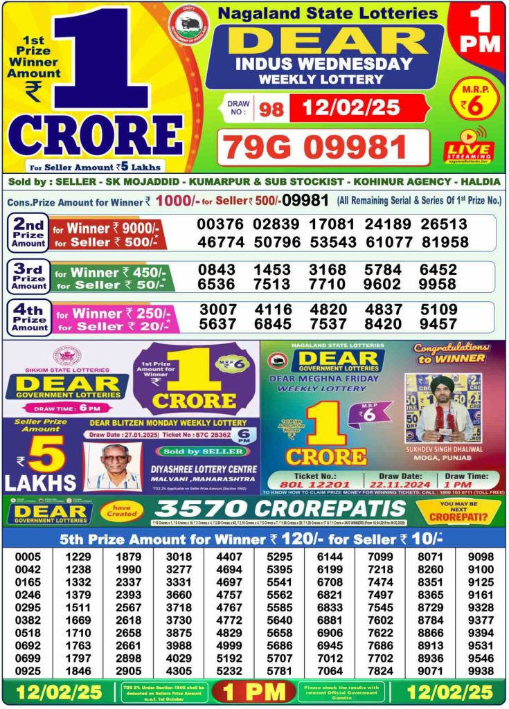 Sambad Lottery Morning Result 1 PM 12-2-2025. Check and free download Dear Lottery Sambad 1 PM Morning Result 12/2/2025. Nagaland Dear Lotery Sambad Result 1 PM 8.1.2023.