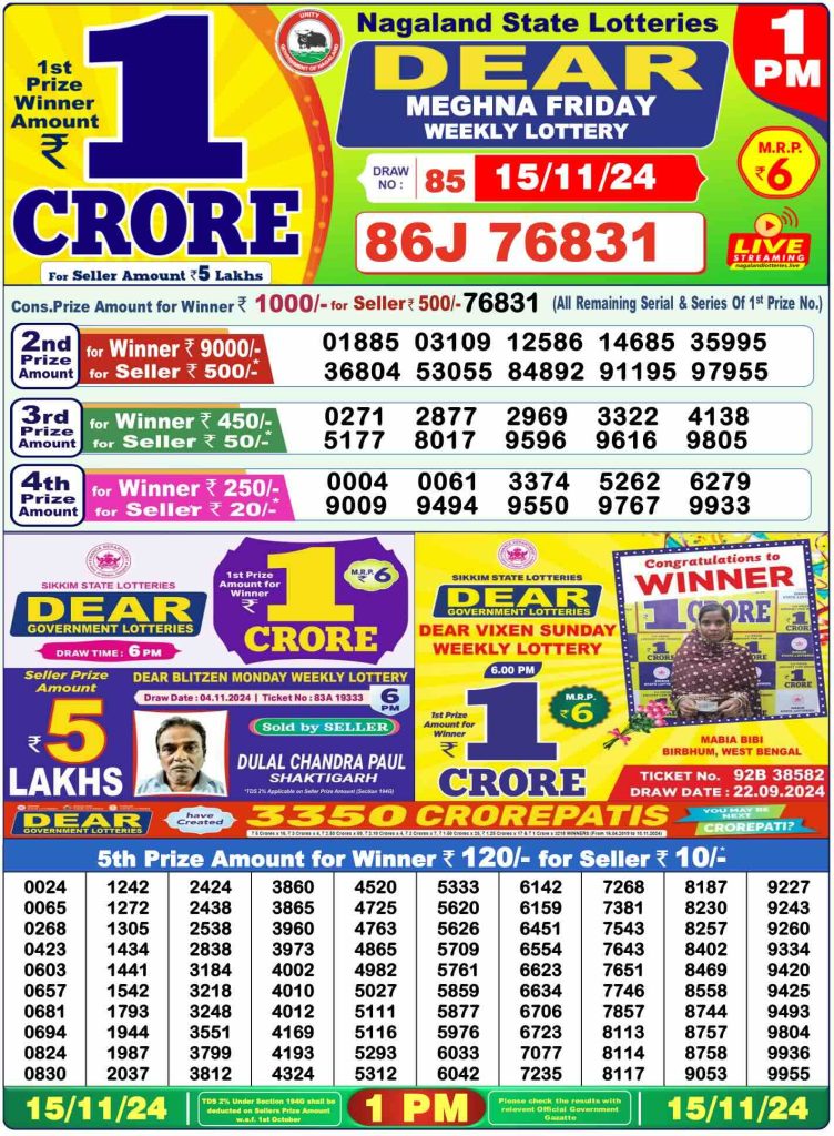 Sambad Lottery Morning Result 1 PM 15-11-2024. Check and free download Dear Lottery Sambad 1 PM Morning Result 15/11/2024. Nagaland Dear Lotery Sambad Result 1 PM 8.1.2023.