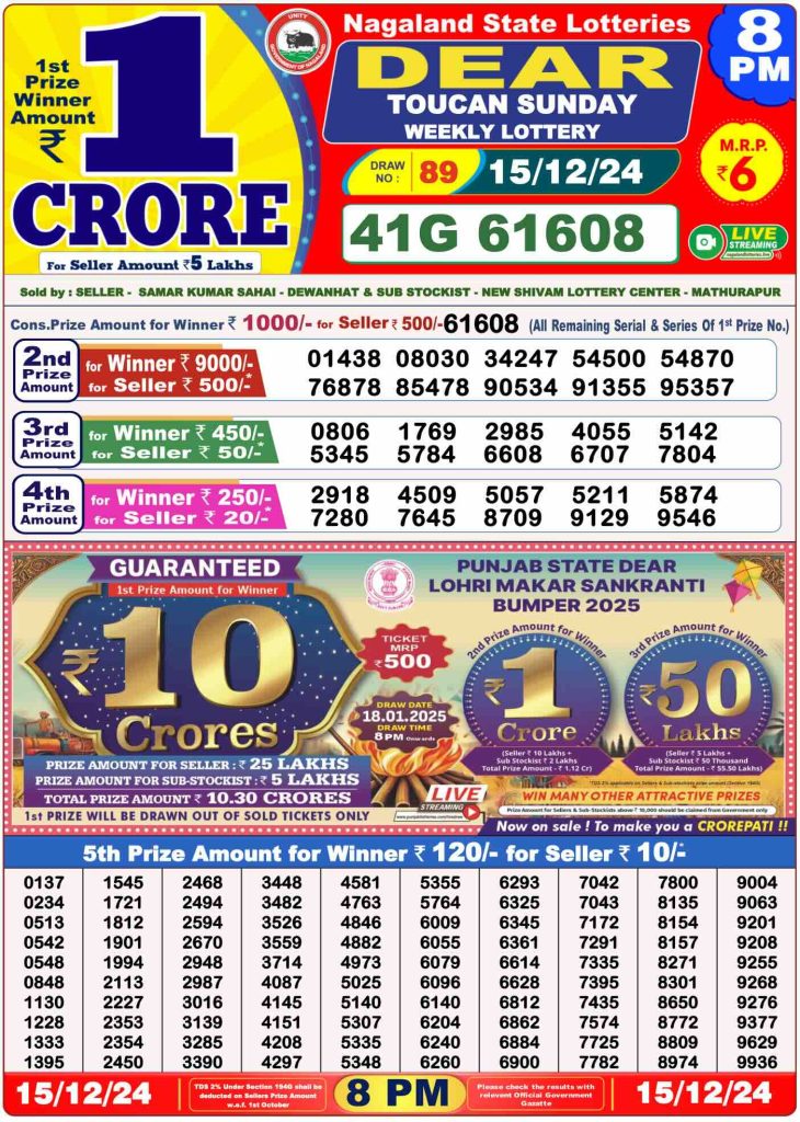 Daily Lottery Sambad Evening Result 8 PM 15/12/2024. Dear Lottery Sambad Evning Result 8 PM live online 15-12-2024. Nagaland Lottery Evening Result 15.12.2024. Lottery Sambad Result 15.12.2024.