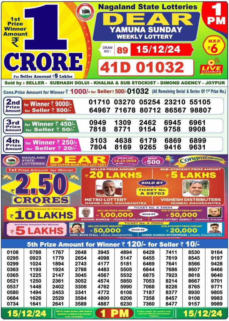 Sambad Lottery Morning Result 1 PM 15-12-2024. Check and free download Dear Lottery Sambad 1 PM Morning Result 15/12/2024. Nagaland Dear Lotery Sambad Result 1 PM 8.1.2023.