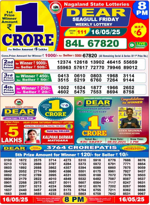 Daily Lottery Sambad Evening Result 8 PM 16/5/2025. Dear Lottery Sambad Evning Result 8 PM live online 16.5.2025. Nagaland Lottery Evening Result 16.5.2025. Lottery Sambad Result 16.5.2025.