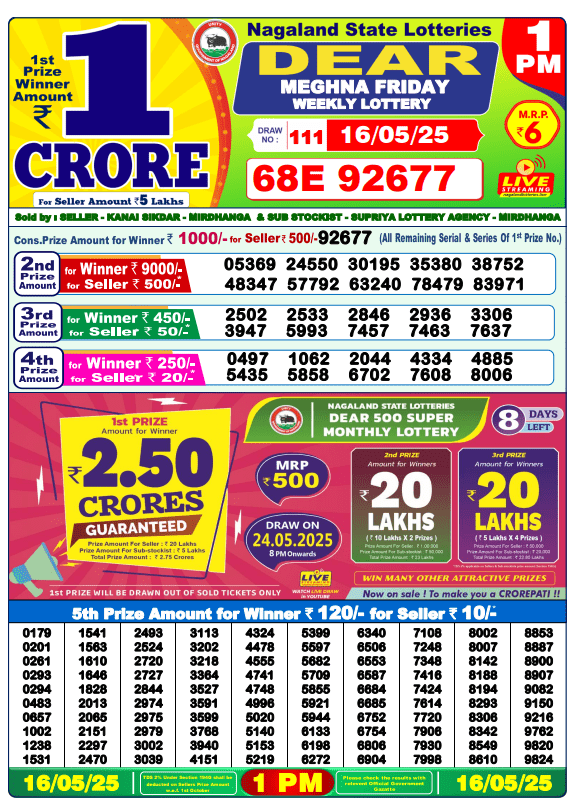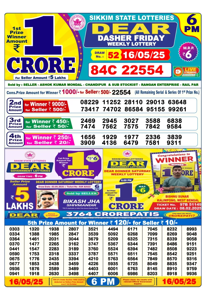 Sambad Lottery Day Result 6 PM 16.5.2025. Free download Nagaland Dear Lottery Sambad 6 PM Day Result Online. Lottery Sambad Day Result 6 PM 16.5.2025.