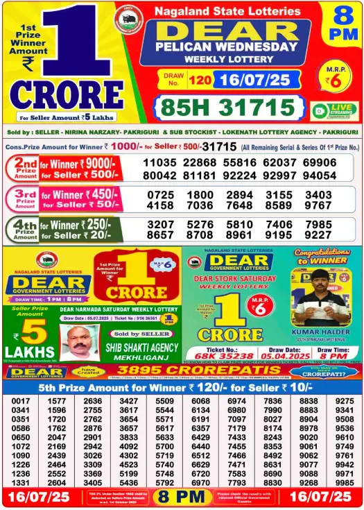 Daily Lottery Sambad Evening Result 8 PM 16/7/2025. Dear Lottery Sambad Evning Result 8 PM live online 16.7.2025. Nagaland Lottery Evening Result 16.7.2025. Lottery Sambad Result 16.7.2025.