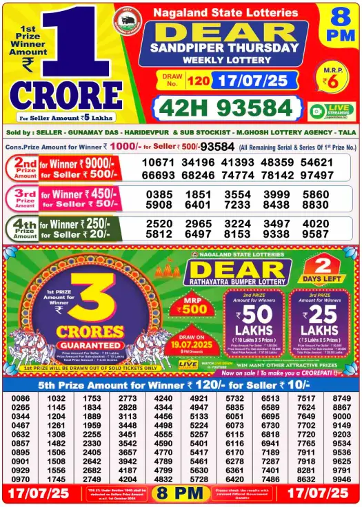 Daily Lottery Sambad Evening Result 8 PM 17/7/2025. Dear Lottery Sambad Evning Result 8 PM live online 17.7.2025. Nagaland Lottery Evening Result 17.7.2025. Lottery Sambad Result 17.7.2025.