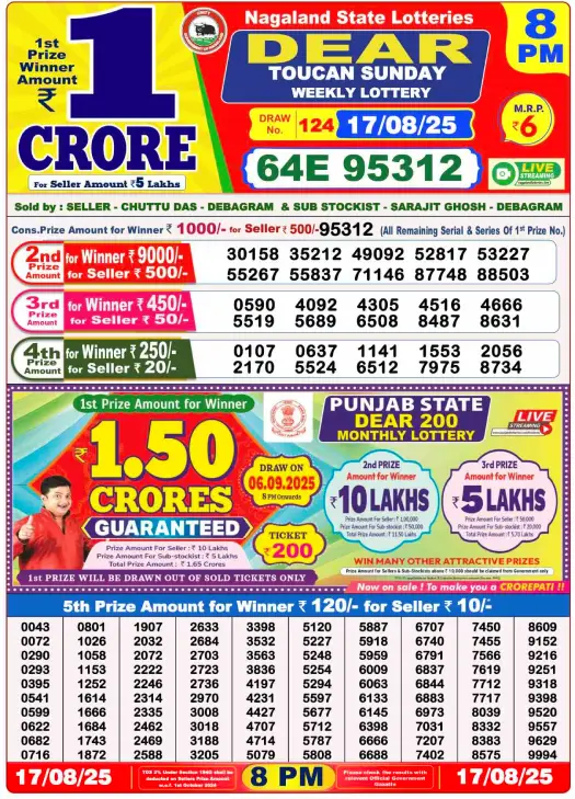 Daily Lottery Sambad Evening Result 8 PM 17/8/2025. Dear Lottery Sambad Evning Result 8 PM live online 17.8.2025. Nagaland Lottery Evening Result 17.8.2025. Lottery Sambad Result 17.8.2025.