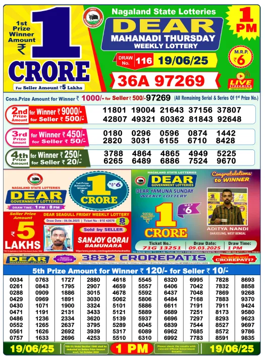 Lottery Sambad Result 19.6.2025 Today 1 PM, 6 PM & 8 PM
