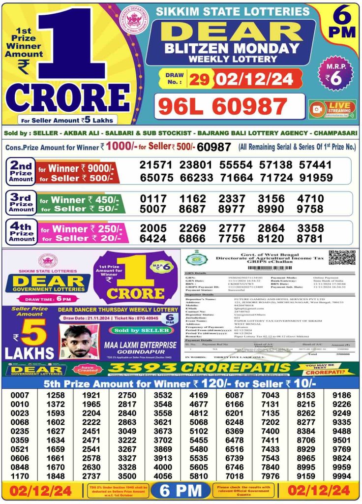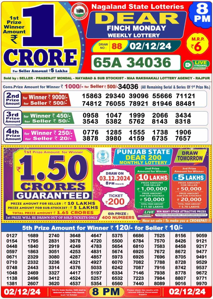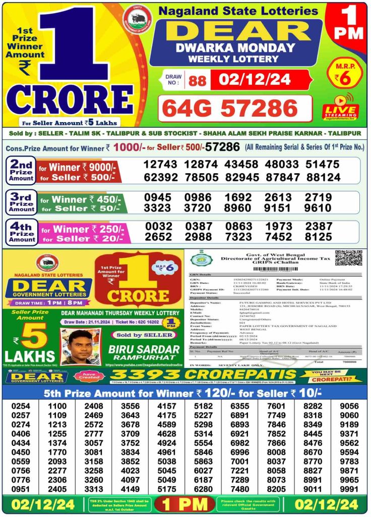 Daily Lottery Sambad Evening Result 8 PM 2/12/2024. Dear Lottery Sambad Evning Result 8 PM live online 2-12-2024. Nagaland Lottery Evening Result 2.12.2024. Lottery Sambad Result 2.12.2024.