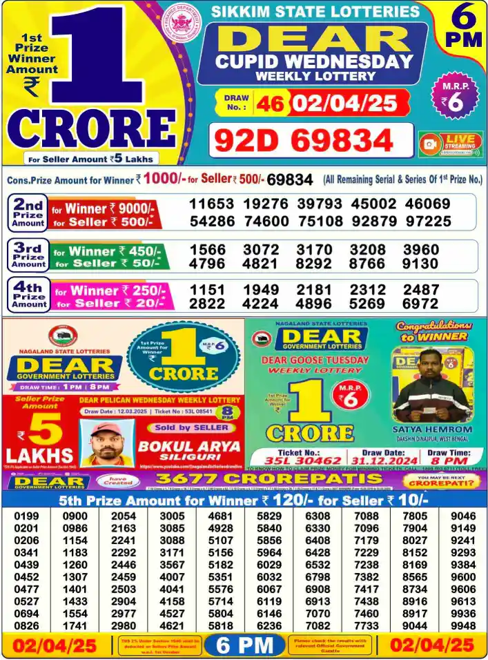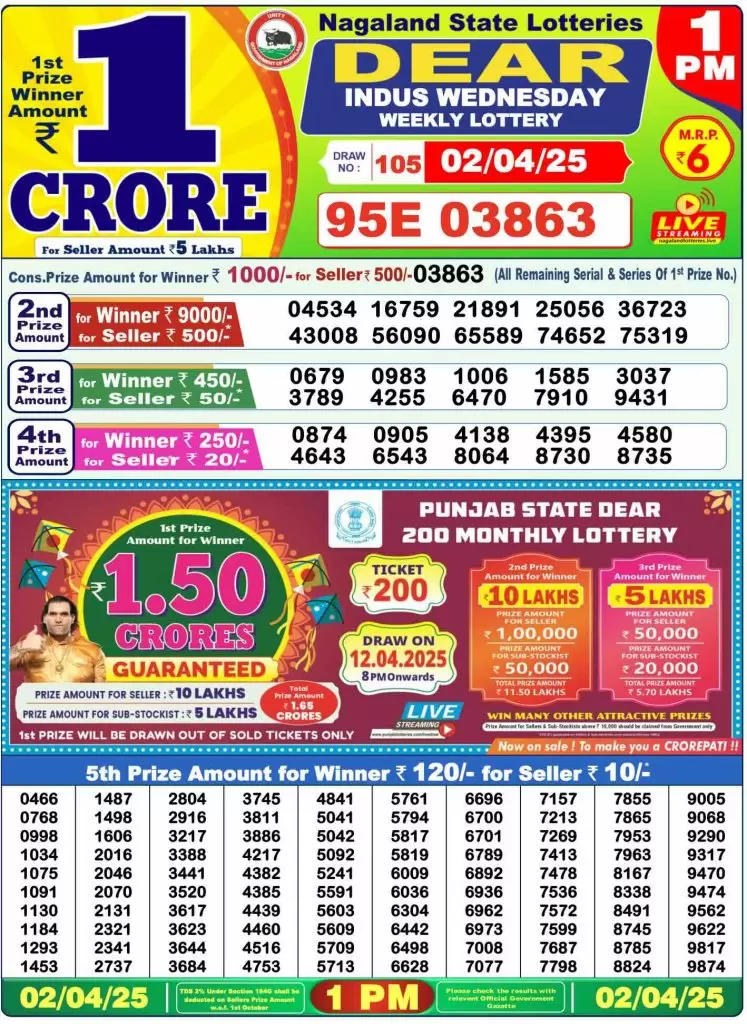 Sambad Lottery Day Result 6 PM 2.4.2025. Free download Nagaland Dear Lottery Sambad 6 PM Day Result Online. Lottery Sambad Day Result 6 PM 2-4-2025.