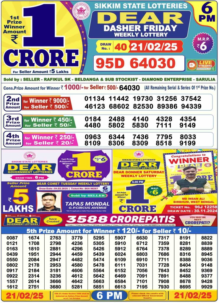 Sambad Lottery Day Result 6 PM 21.2.2025. Free download Nagaland Dear Lottery Sambad 6 PM Day Result Online. Lottery Sambad Day Result 6 PM 21-2-2025.
