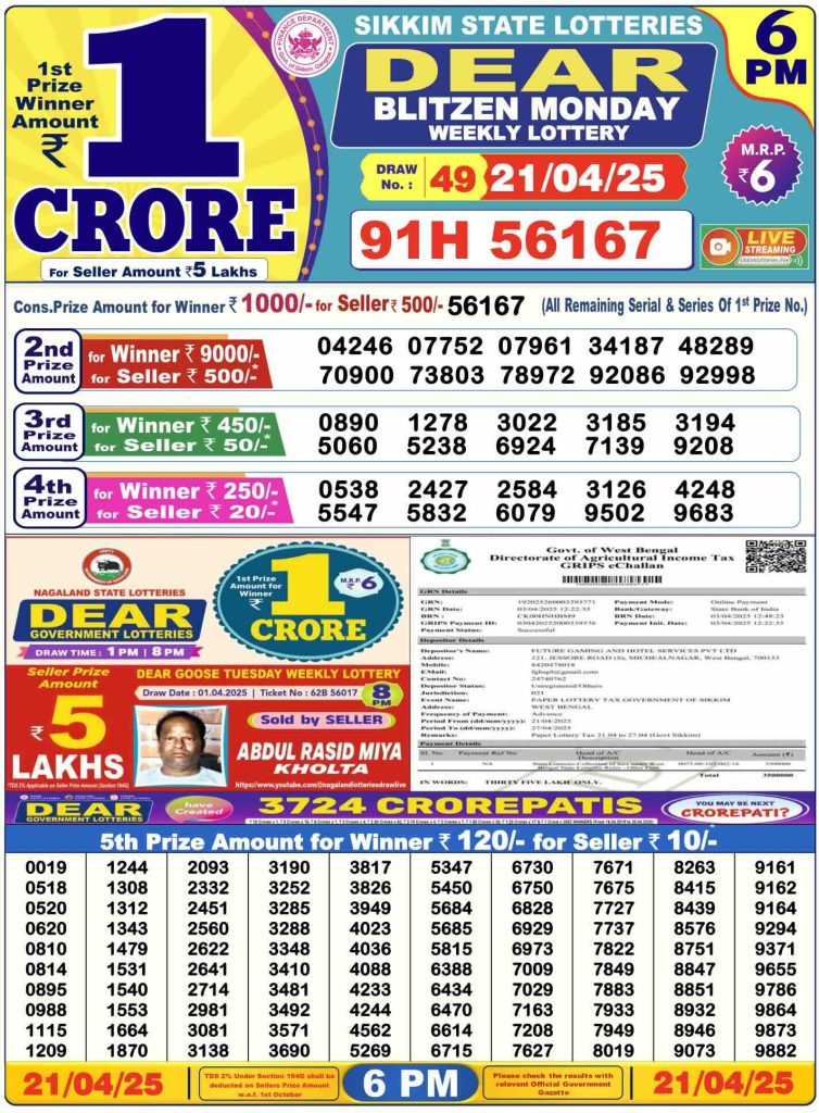 Sambad Lottery Morning Result 1 PM 21-4-2025. Check and free download Dear Lottery Sambad 1 PM Morning Result 21/4/2025. Nagaland Dear Lotery Sambad Result 1 PM 8.1.2023.