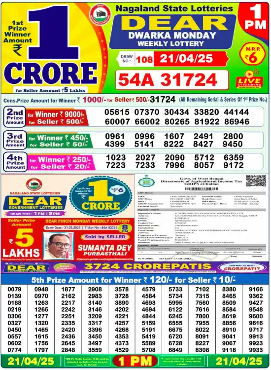 Sambad Lottery Day Result 6 PM 21.4.2025. Free download Nagaland Dear Lottery Sambad 6 PM Day Result Online. Lottery Sambad Day Result 6 PM 21-4-2025.