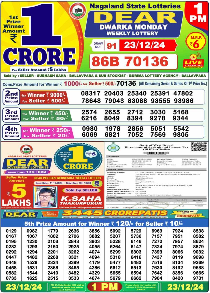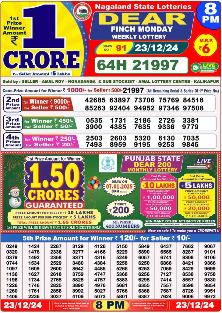 Sambad Lottery Morning Result 1 PM 23-12-2024. Check and free download Dear Lottery Sambad 1 PM Morning Result 23/12/2024. Nagaland Dear Lotery Sambad Result 1 PM 8.1.2023.