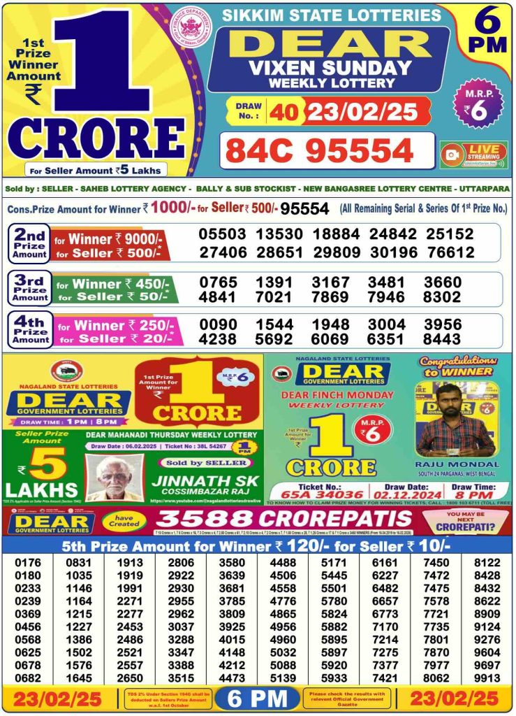 Lottery Sambad Result 23.2.2025 Today 1 PM, 6 PM & 8 PM