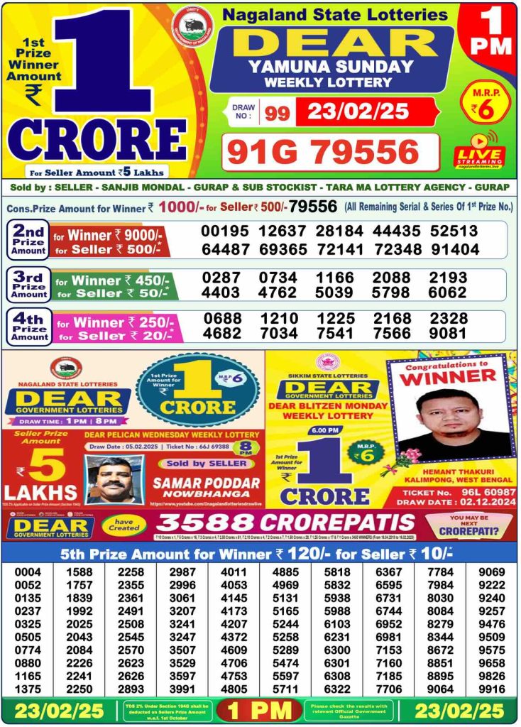 Sambad Lottery Morning Result 1 PM 23-2-2025. Check and free download Dear Lottery Sambad 1 PM Morning Result 23/2/2025. Nagaland Dear Lotery Sambad Result 1 PM 8.1.2023.