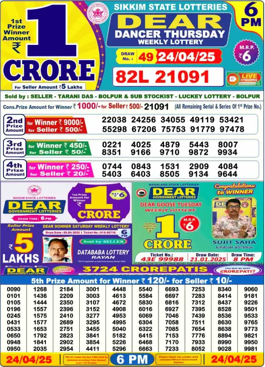 Lottery Sambad Result 24.4.2025 Today 1 PM, 6 PM & 8 PM