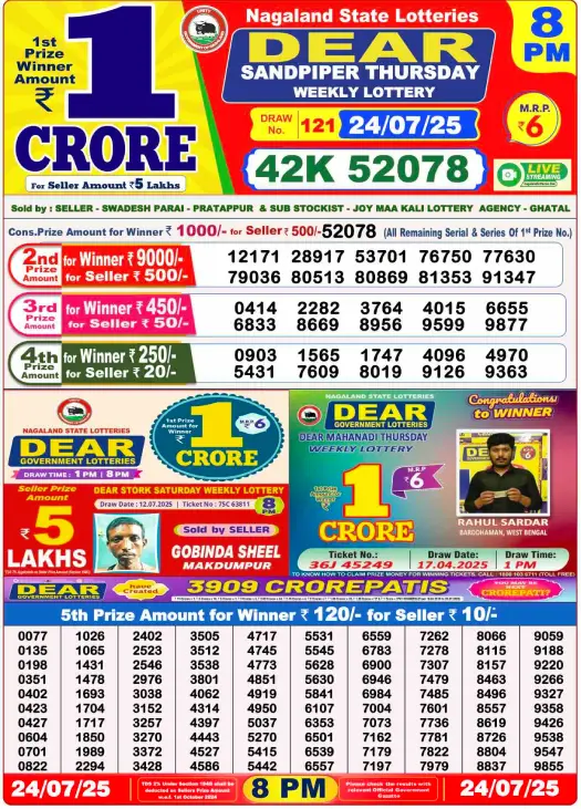 Sambad Lottery Today Result 24.7.2025 (8 PM) |