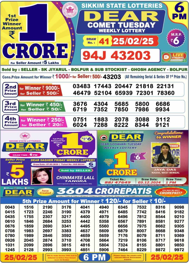Sambad Lottery Today Result 25-2-2025 (6 PM) |