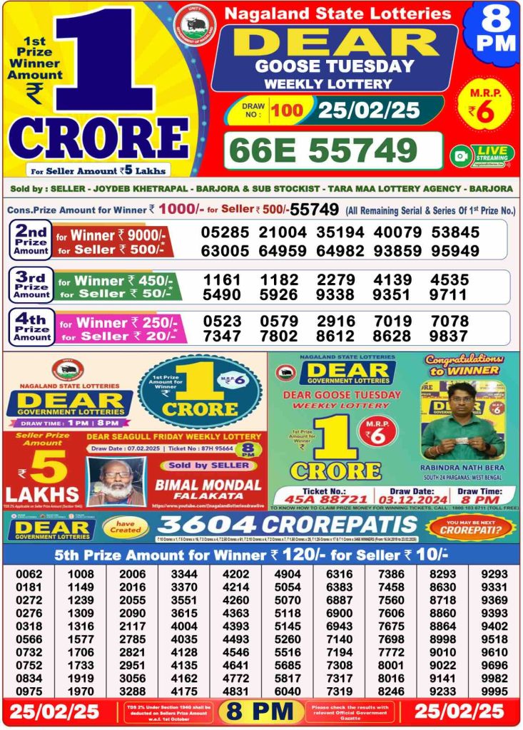 Daily Lottery Sambad Evening Result 8 PM 25/2/2025. Dear Lottery Sambad Evning Result 8 PM live online 25-2-2025. Nagaland Lottery Evening Result 25.2.2025. Lottery Sambad Result 25.2.2025.