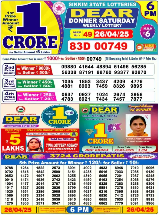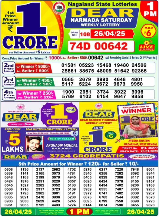 Sambad Lottery Morning Result 1 PM 26-4-2025. Check and free download Dear Lottery Sambad 1 PM Morning Result 26/4/2025. Nagaland Dear Lotery Sambad Result 1 PM 8.1.2023.