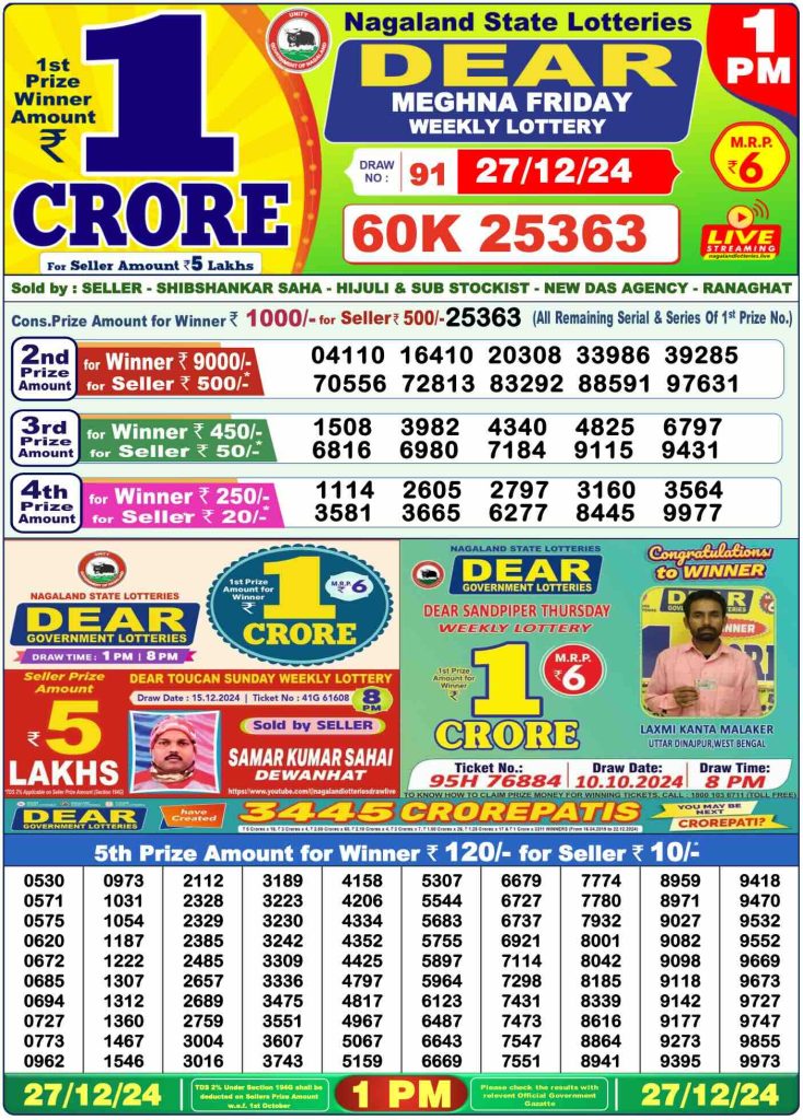 Sambad Lottery Morning Result 1 PM 27-12-2024. Check and free download Dear Lottery Sambad 1 PM Morning Result 27/12/2024. Nagaland Dear Lotery Sambad Result 1 PM 8.1.2023.