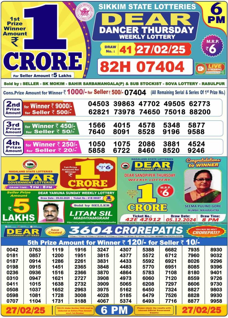 Daily Lottery Sambad Evening Result 8 PM 27/2/2025. Dear Lottery Sambad Evning Result 8 PM live online 27-2-2025. Nagaland Lottery Evening Result 27.2.2025. Lottery Sambad Result 27.2.2025.