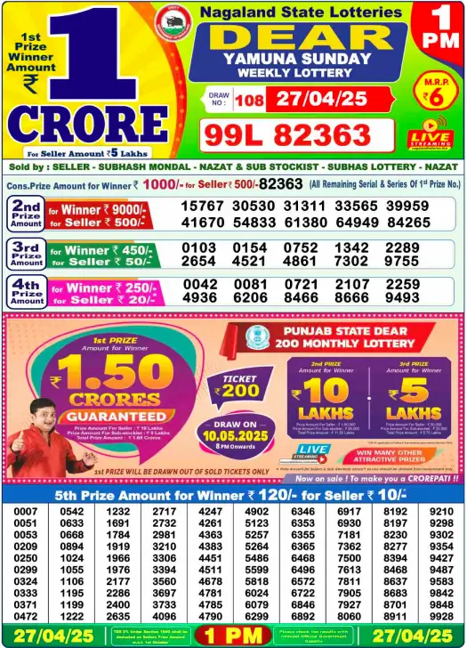 Sambad Lottery Morning Result 1 PM 27-4-2025. Check and free download Dear Lottery Sambad 1 PM Morning Result 27/4/2025. Nagaland Dear Lotery Sambad Result 1 PM 8.1.2023.