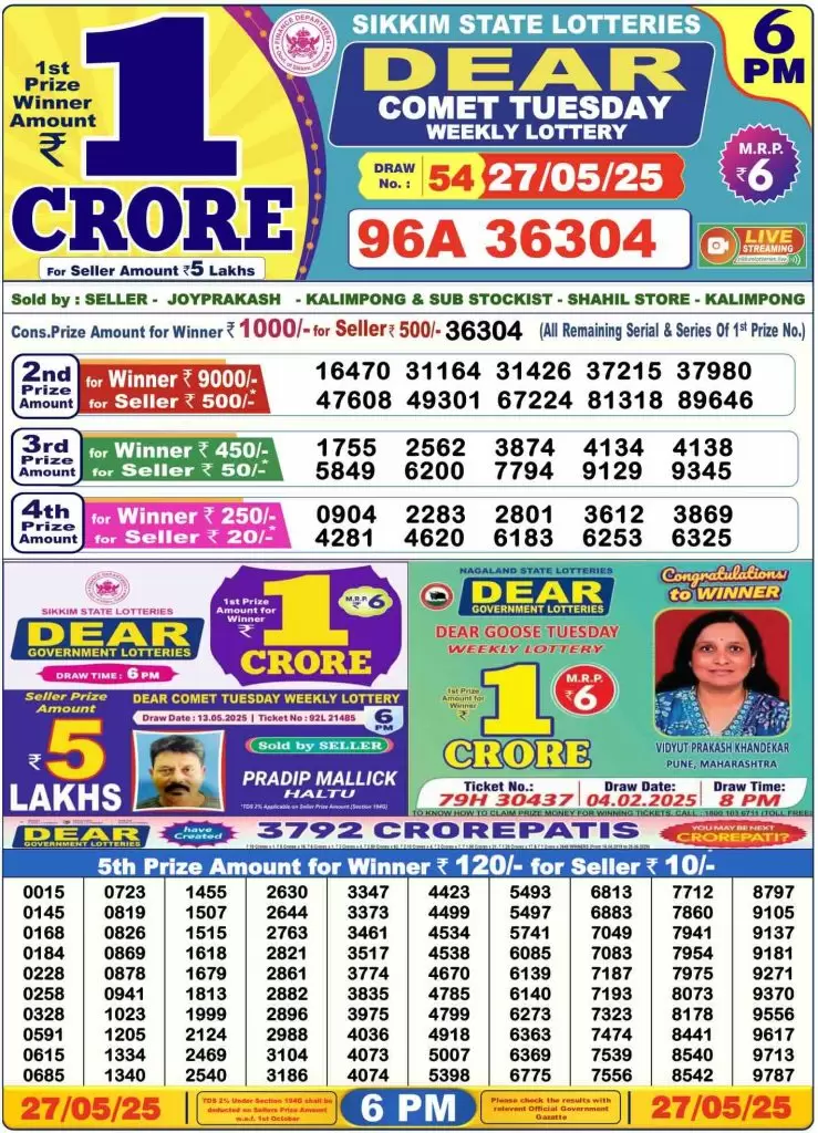 Sambad Lottery Today Result 27.5.2025 (6 PM) |