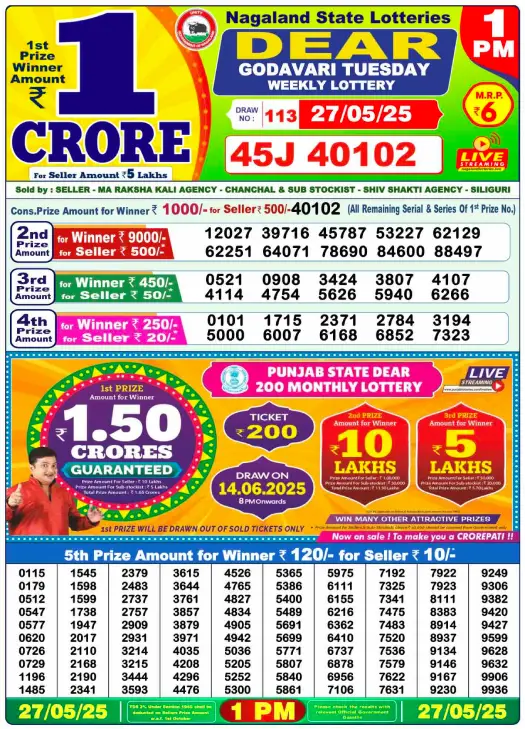 Sambad Lottery Day Result 6 PM 27.5.2025. Free download Nagaland Dear Lottery Sambad 6 PM Day Result Online. Lottery Sambad Day Result 6 PM 27.5.2025.