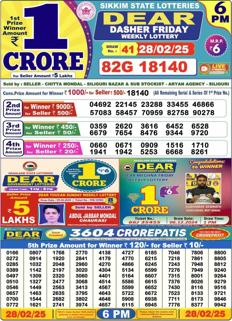 Sambad Lottery Day Result 6 PM 28.2.2025. Free download Nagaland Dear Lottery Sambad 6 PM Day Result Online. Lottery Sambad Day Result 6 PM 28-2-2025.
