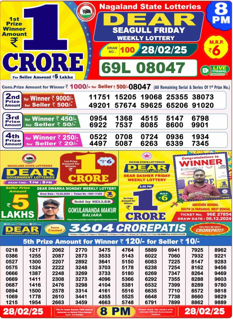 Daily Lottery Sambad Evening Result 8 PM 28/2/2025. Dear Lottery Sambad Evning Result 8 PM live online 28-2-2025. Nagaland Lottery Evening Result 28.2.2025. Lottery Sambad Result 28.2.2025.