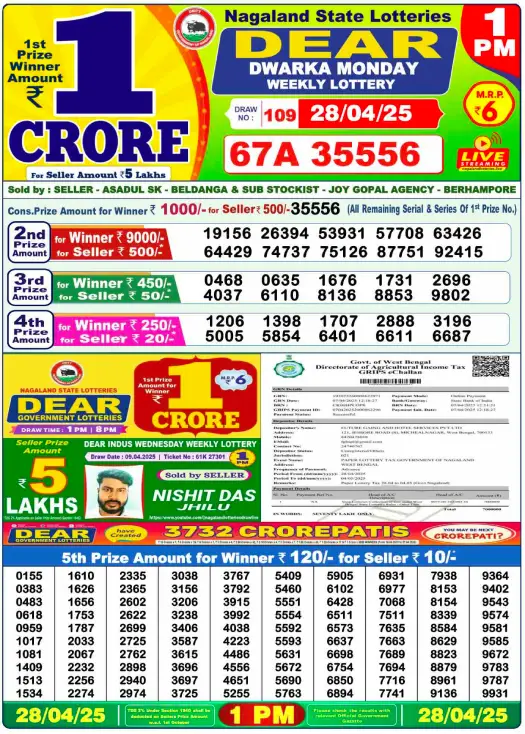 Sambad Lottery Morning Result 1 PM 28-4-2025. Check and free download Dear Lottery Sambad 1 PM Morning Result 28/4/2025. Nagaland Dear Lotery Sambad Result 1 PM 8.1.2023.
