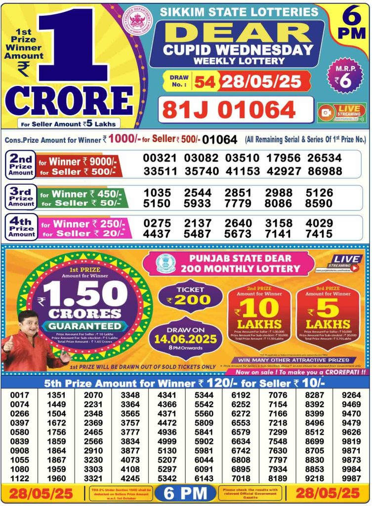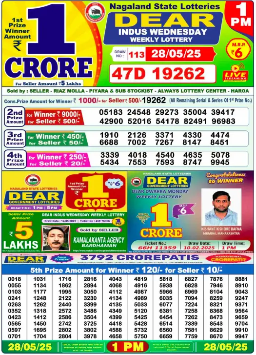 Sambad Lottery Day Result 6 PM 28.5.2025. Free download Nagaland Dear Lottery Sambad 6 PM Day Result Online. Lottery Sambad Day Result 6 PM 28.5.2025.