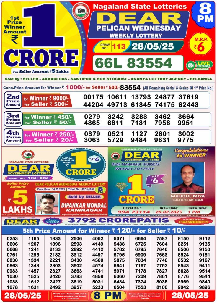Daily Lottery Sambad Evening Result 8 PM 28/5/2025. Dear Lottery Sambad Evning Result 8 PM live online 28.5.2025. Nagaland Lottery Evening Result 28.5.2025. Lottery Sambad Result 28.5.2025.