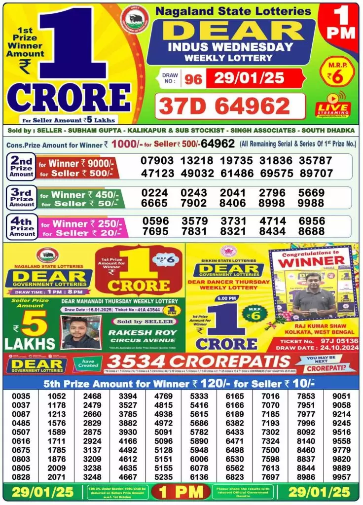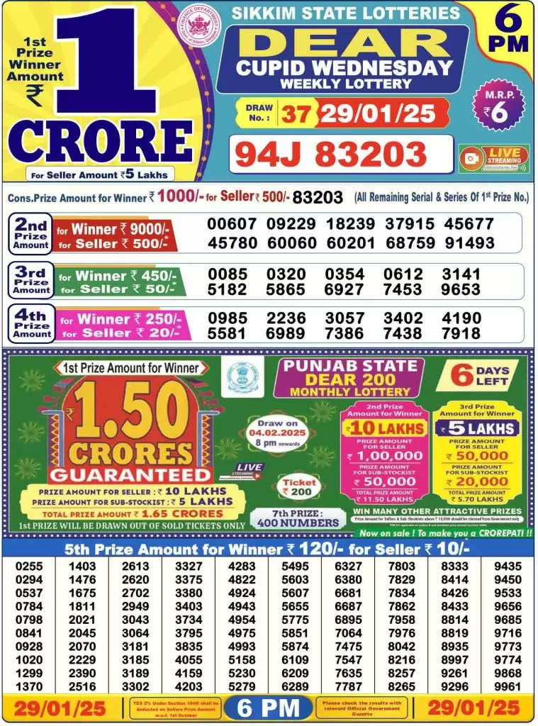 Sambad Lottery Day Result 6 PM 29.1.2025. Free download Nagaland Dear Lottery Sambad 6 PM Day Result Online. Lottery Sambad Day Result 6 PM 29-1-2025.