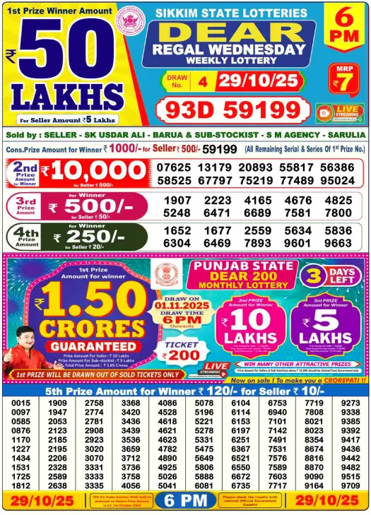 Sambad Lottery Day Result 6 PM 29.10.2025. Free download Nagaland Dear Lottery Sambad 6 PM Day Result Online. Lottery Sambad Day Result 6 PM 29.10.2025.
