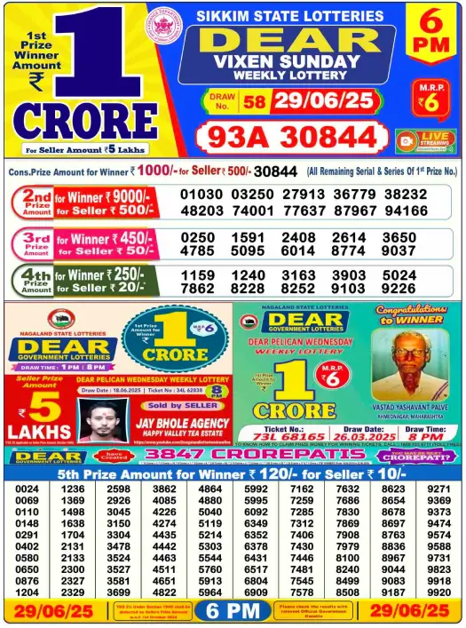 Sambad Lottery Day Result 6 PM 29.6.2025. Free download Nagaland Dear Lottery Sambad 6 PM Day Result Online. Lottery Sambad Day Result 6 PM 29.6.2025.