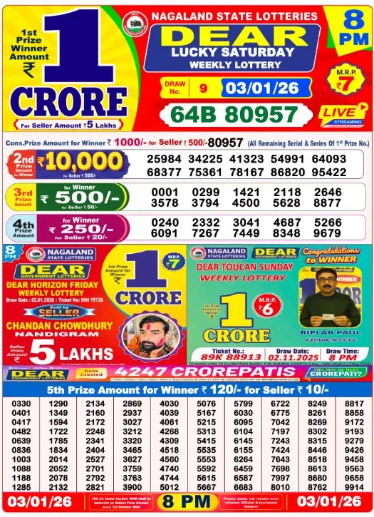 Daily Lottery Sambad Evening Result 8 PM 3/1/2026. Dear Lottery Sambad Evning Result 8 PM live online 3.1.2026. Nagaland Lottery Evening Result 3.1.2026. Lottery Sambad Result 3.1.2026.