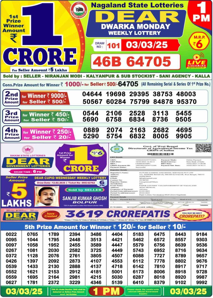 Sambad Lottery Morning Result 1 PM 3-3-2025. Check and free download Dear Lottery Sambad 1 PM Morning Result 3/3/2025. Nagaland Dear Lotery Sambad Result 1 PM 8.1.2023.