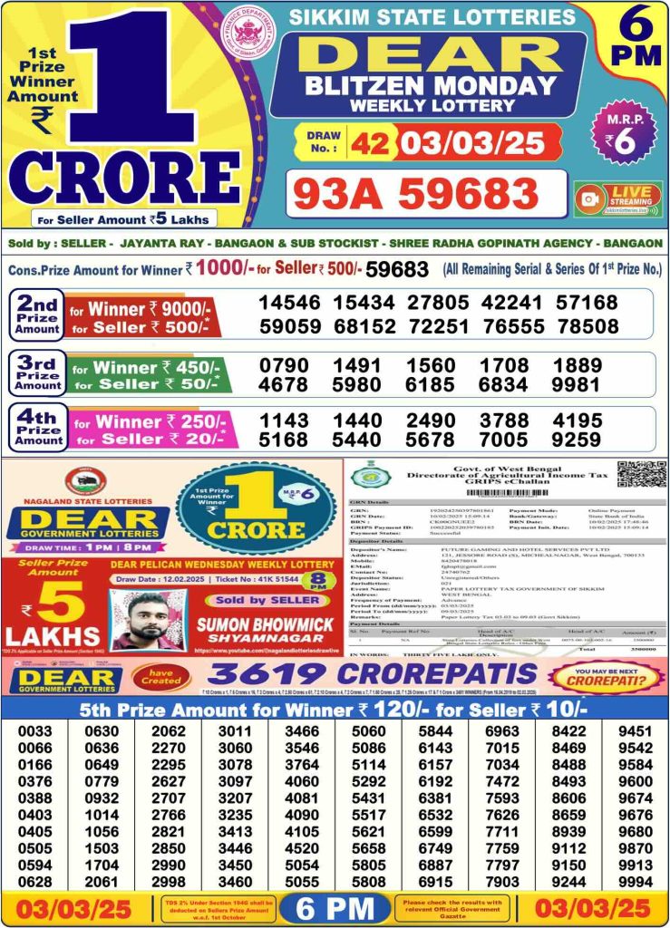 Sambad Lottery Day Result 6 PM 3.3.2025. Free download Nagaland Dear Lottery Sambad 6 PM Day Result Online. Lottery Sambad Day Result 6 PM 3-3-2025.