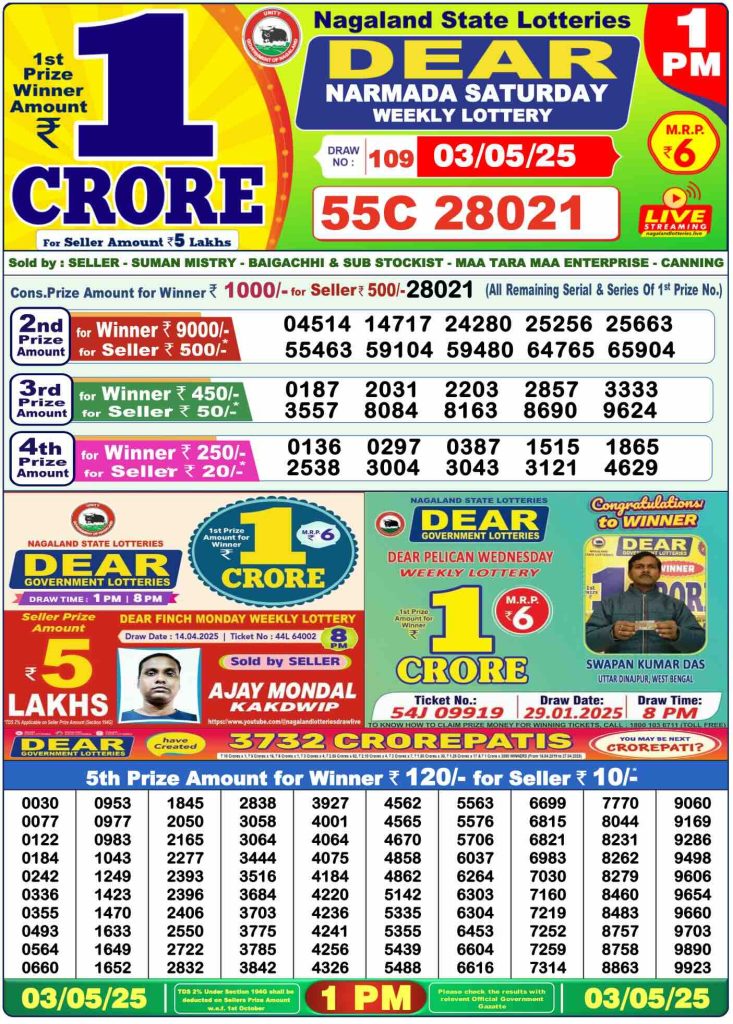 Sambad Lottery Morning Result 1 PM 3-5-2025. Check and free download Dear Lottery Sambad 1 PM Morning Result 3/5/2025. Nagaland Dear Lotery Sambad Result 1 PM 8.1.2023.